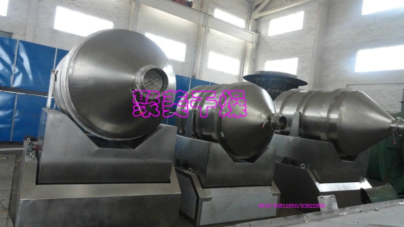 EYH二维混料机的转筒可同时进行二个运动,一个为转筒的转动,另一个为转筒随摆动架的摆动。被混合物料在转筒内随转筒转动、翻转、混合的同时,又随转筒的摆动而发生左右来回的掺混运动,在这两个运动的共同作用下,物料在短时间内得到充分的混合。EYH二维混料机适合所有粉、粒状物料的混合。