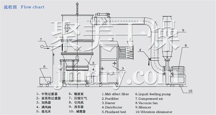 3.混合、制粒、干燥在一机内完成(一步法制粒)。