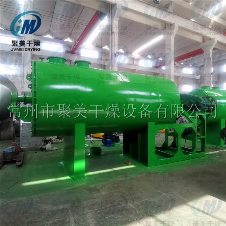 本机是一种新颖卧式间歇式真空干燥设备,湿物料经传导蒸发,带有刮板搅拌器不断清除热面上的物料,并在容器内推移形成循环流,水份蒸发后由真空泵抽出。