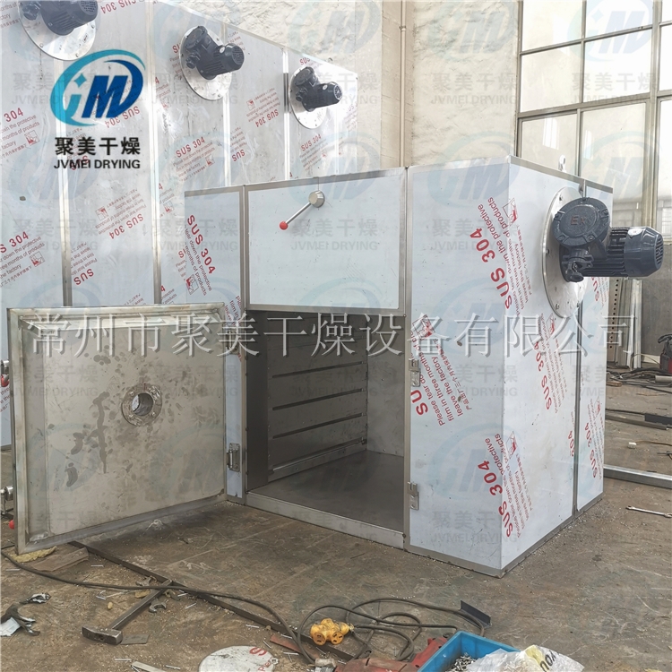 大部分热风在箱内循环,热效率高,节约能源。利用强制通风作用,箱内设有可调式分风板,物料干燥均匀,热源可采用蒸汽、热水、电、远红外,选择广泛。整机噪音小,运转平衡。温度自控,安装维修方便。适用范围广,可干燥各种物料,是通用干燥设备。