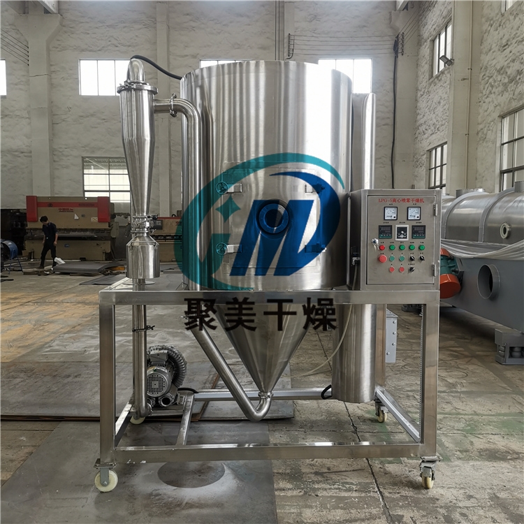 8.喷雾干燥机调节方便,可以在较大范围内改变操作条件以控制产品的质量指标,如粒度分布、湿含量、 生物活性、溶解性、色、香、味等。