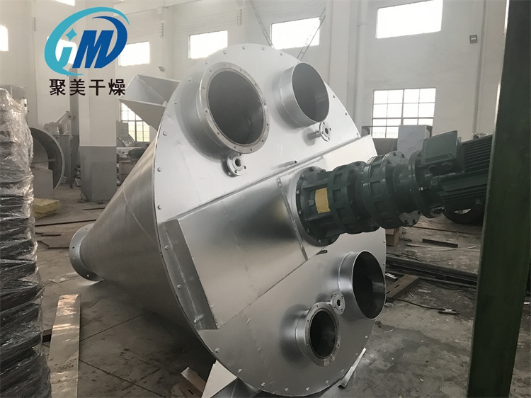 (3)粉末从圆锥体底部向上流动,并排放到螺旋体周围的表面,材料被混合。