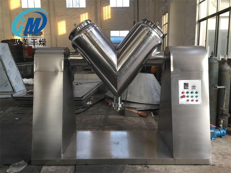 下一步是机器工作时间,打开电源按钮,将停止按钮向左旋转,启动混料机反转按钮,在600 r/min产品混合过程中调整电机转速。混合物达到规定时间后,通过调整电机的速度按钮停止机器。机器停止时,搅拌机出料口应面向地面,将电机转速按钮调整为0位v型搅拌机,向右旋转停止按钮,切断电源。最后放料:打开v型搅拌机进料口,用规定的容器在放料口进行装载,直至放进料斗内物料。