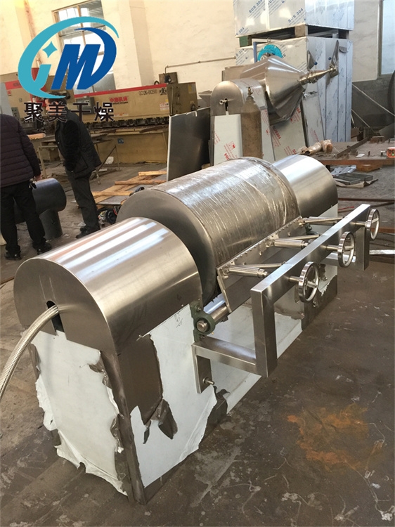 启动电机,主滚筒运动平稳,加料后温度升高,调整电机转速和物料对滚筒薄膜的均匀性,控制物料的水分含量。