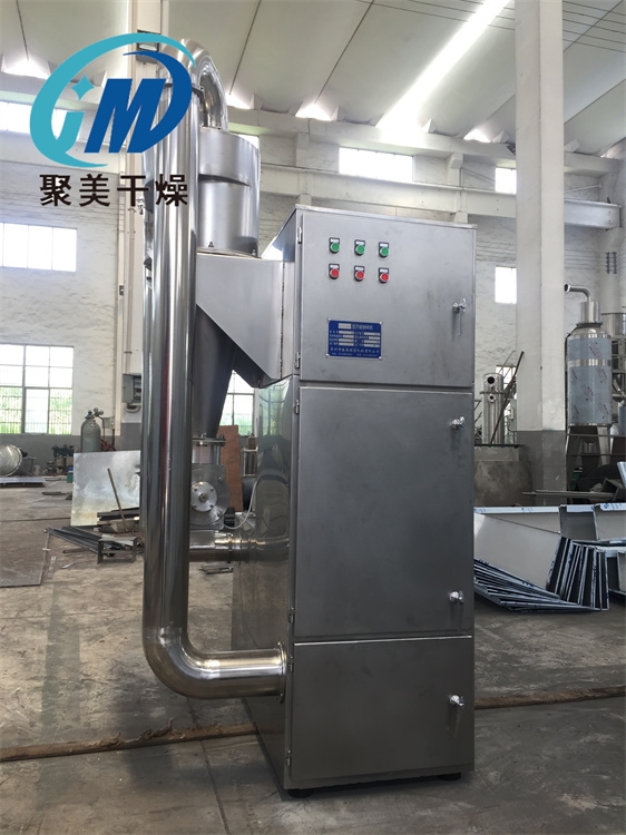 本实用新型结构简单,破碎腔易于拆装,易于清洗。本机由不锈钢制成,符合GMP要求,运行平稳,噪音低,振动小,操作简单,可更换不同目数的筛网来控制粉末的细度。一般来说,设备轴承过热的原因有很多,如两个轴承座的高度不平时,或者当电机转子和粉碎机转子不同心时,轴承将受到额外的负荷冲击,从而导致轴承过热,此时需要立即停机排除故障,否则很容易损坏轴承。