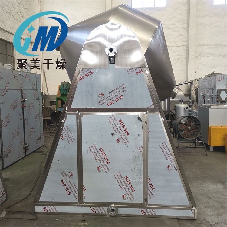 双锥回转真空干燥机是一种双锥形的回转罐体,罐内在真空条件下,向夹套内通入蒸汽或热水进行加热,热量通过罐内壁与湿物料接触,湿物料吸热后蒸发的水汽,通过真空泵经真空排气管排出。双锥回转真空干燥机由于罐内的真空状态以及罐的旋转使物料不断上下内外翻动,从而加快物料的干燥速度,提高干燥效率,达到均匀干燥的目的。