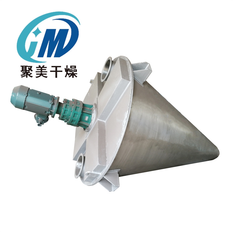 双螺旋锥形混合机是一种容器固定式混合机。该设备是一种新型、高精度的混合设备,广泛应用于制药、化工、饲料等行业的各种粉末混合。其自转和公转由一套电机和摆线针轮减速器完成。采用双螺杆不对称搅拌,使物料混合范围更大,混合更均匀,混合速度更快,对比重量不同,混合比较大的物料混合更合适,与物料接触部分均采用不锈钢。