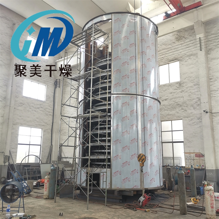 湿物料通过定量给料机均匀送入圆盘式连续干燥器顶部,干燥过程随着干燥器的流动而完成,干燥物料从干燥器底部排出。