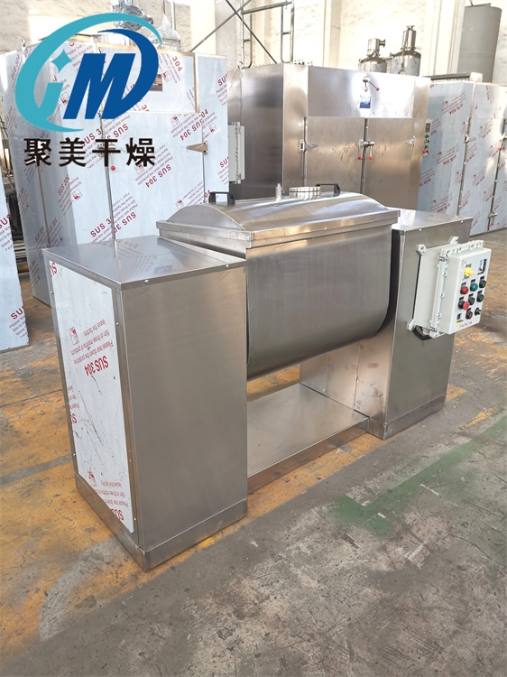 槽型混合机用于混合粉末或糊状物料,使不同质物料混合均匀。是一种卧式槽形单桨混合、搅拌桨为通轴式,易于清洗。与物体接触全部由不锈钢制成,具有良好的耐腐蚀性,混合槽可自动翻转倒料。