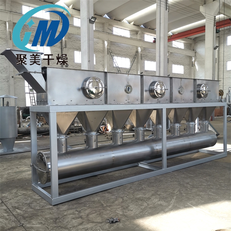5、物料进入沸腾室后,要保持一定的料层厚度,由于物料进入沸腾室后自动移向出料口,初始的物料虽得到干燥,需放出后再加入加料器进行干燥,经过几次放料测试,测得物料含有水份符合要求后,方可连续加料与出料。使用时要根据不同物料的规格、性能、含水量等,控制物料的加入量。