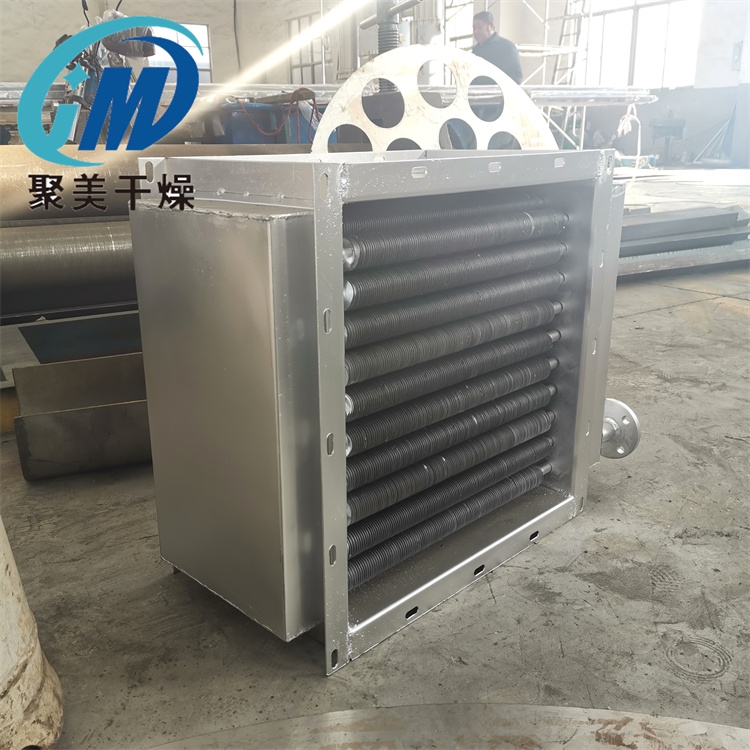 散热排管只要有顺空气注射的三排叉排列螺旋翅片管束组成。散热器翅片管束的加工工艺是把冷轧刚带用机械绕片方法,绕在无缝钢管上,然后进行表面镀锌处理。散热翅片与散热管接触面广而紧。传热性能良好,稳定并且耐腐蚀,蒸汽或高温水流经钢管之内,热量通过仅绕在钢管上的翅片传给片面的空气,达到加热空气的作用。