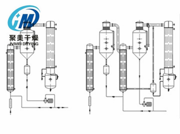 a.采用长管加热器,蒸发时物料在管内由二次蒸汽带动呈膜状上升,蒸发时间短,一次蒸发达到浓度要求,是一种连续蒸发器。设备内外抛光,符合GMP要求。